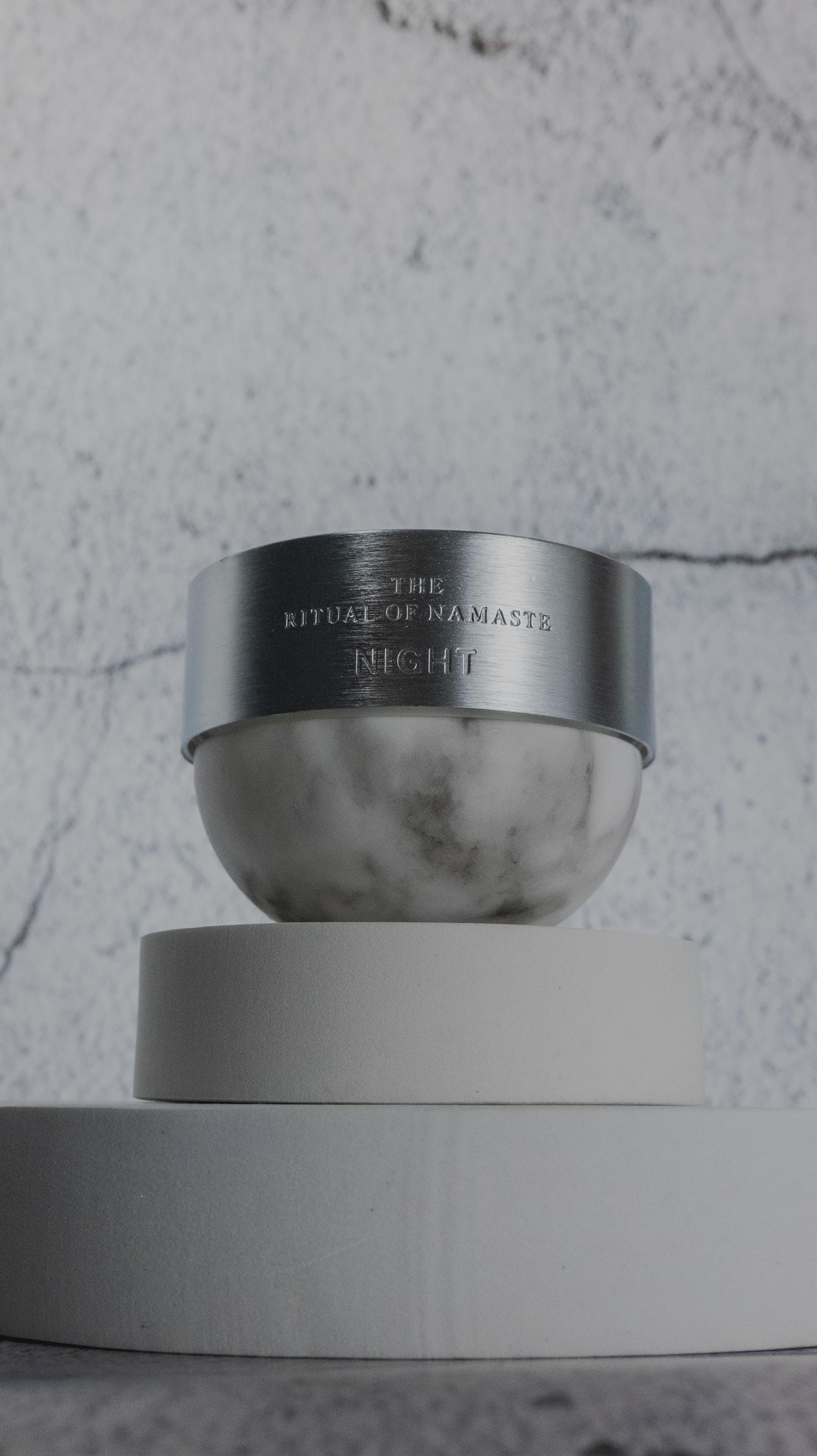 La composition minimaliste, construite autour de formes circulaires et de matières minérales, évoque la stabilité, l’équilibre et la sérénité.